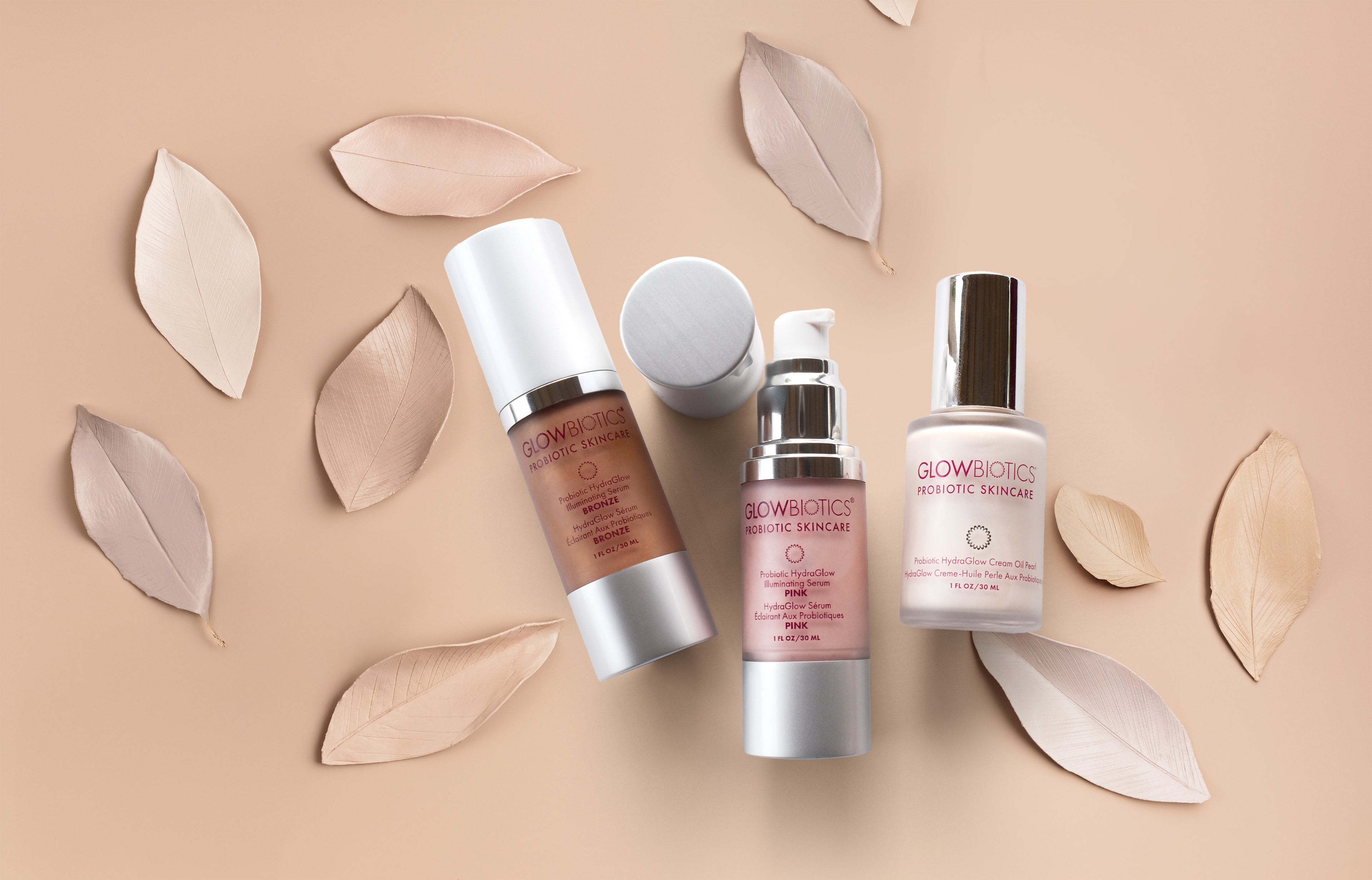 Glowbiotics' Probiotic HydraGlow Illuminating Serums, available in Pink, Bronze, and Pearl, hydrate and brighten the skin for a radiant glow. Each shade enhances different skin tones with probiotics and antioxidants.