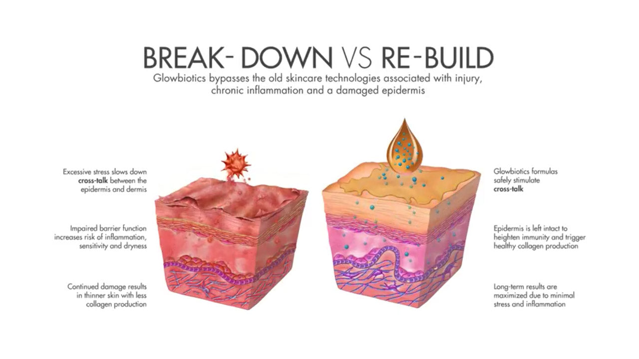 GLOWBIOTICS bypasses the old skincare technologies associated with chronic inflammation and a damaged epidermis. Instead of stripping the skin, our formulas work to rebalance its microbiome and strengthen its barrier, allowing your skin to heal and thrive.
